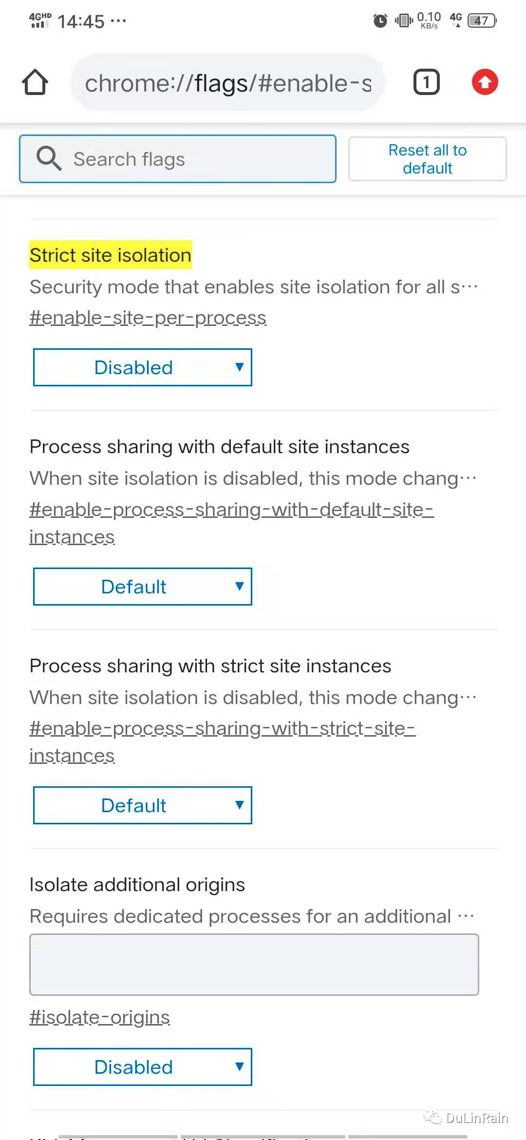 你也可以通过访问chrome://flags#site-isolation-trial-opt-out,选择“Disabled (not recommended)”并重新启动,来尝试诊断错误。